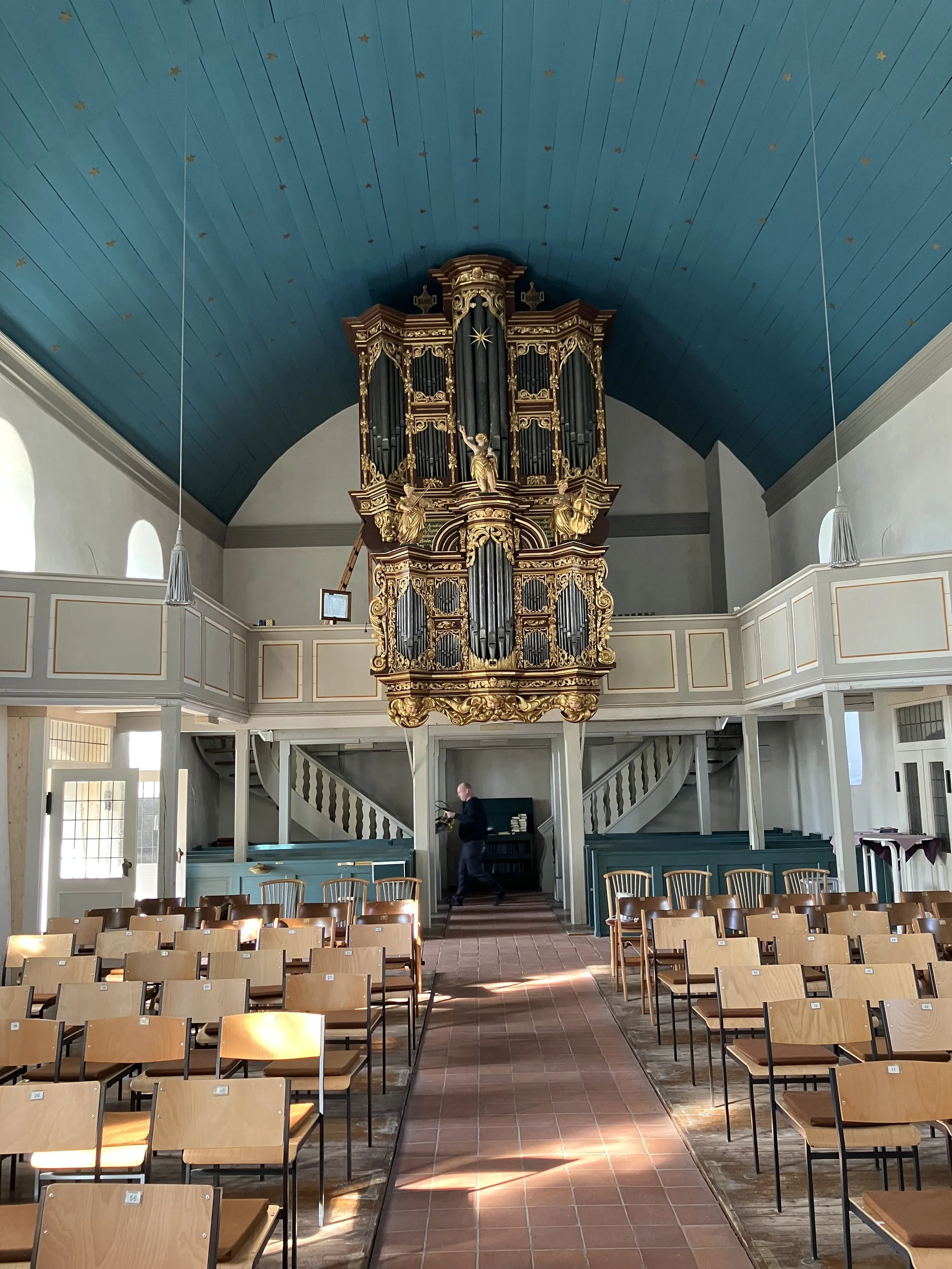 Die Maßnahme umfasst eine denkmalgerechte Generalüberholung der Arp-Schnitger-Orgel mit dem klaren Ziel, ihren originalen Zustand sowie das historisch gewachsene Klangbild dauerhaft zu bewahren. Hierzu werden das Gehäuse einschließlich präventiver Maßnahmen gegen Schimmel und Schädlingsbefall, die Windversorgung (Gebläse, Balganlage, Kanäle) sowie Klaviaturen, Spieltisch und Mechaniken umfassend gereinigt, überprüft und funktional instandgesetzt, wobei verschlissene Leder- und Polsterungselemente gezielt erneuert werden. Die Windladen und das Pfeifenwerk erfahren eine differenzierte konservatorische Behandlung, insbesondere im Hinblick auf Bleikorrosion, mechanische Schäden und Dichtigkeitsprobleme, unter Anwendung abgestufter restauratorischer Verfahren. Den Abschluss bilden eine behutsame Nachintonation und präzise Stimmung auf Grundlage der vorhandenen Tonhöhe, um die klangliche Authentizität und langfristige Betriebssicherheit des Instruments zu sichern.